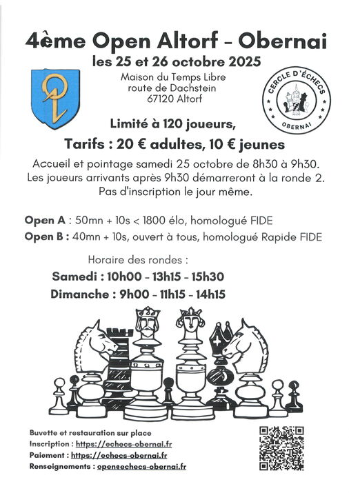 Si vous souhaitez apprendre, vous perfectionner ou simplement jouer aux échecs, le club d'échecs d'Altorf vous propose :